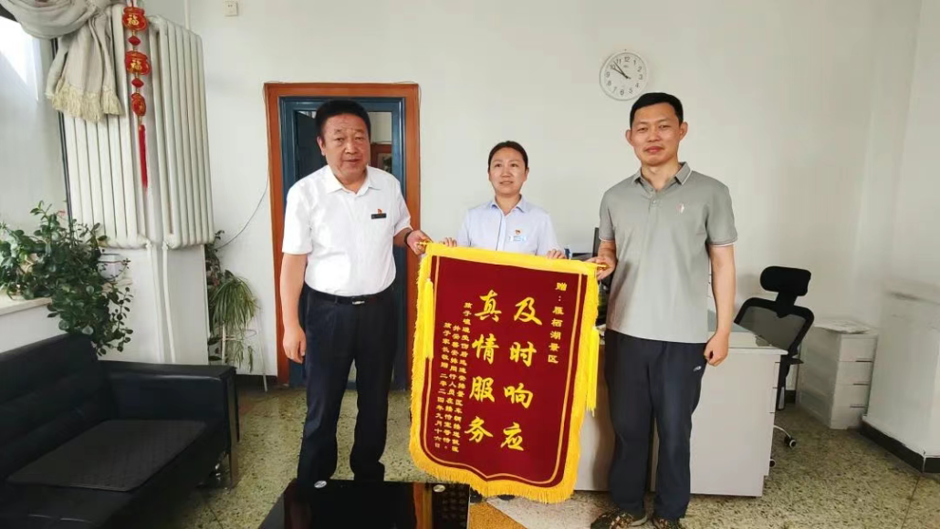 2025年6月1日,雁棲湖景區(qū)迎來溫情一幕,一位游客手持鮮艷的錦旗,親手交到工作人員手中。游客感激的說道:“雁棲湖景區(qū)的暖心服務,讓我們對這里有了更深的情懷,今天正好六一兒童節(jié),我們帶孩子重游雁棲湖,特意送上錦旗表示感謝?!边@面錦旗承載著一次意外中的深深感激,無聲訴說著景區(qū)高效應急響應與暖心服務的動人故事。