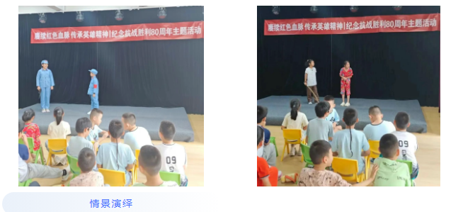 為讓孩子們切身感受抗戰(zhàn)精神,老師在帶領(lǐng)大家研讀《小英雄王二小》的劇本後,讓他們換上抗日兒童團的服裝,孩子們深情投入的表演,再現(xiàn)了小英雄智斗敵人、守護群眾的英勇場景?;顒游猜暎蠹覡幭瓤轴岱窒韰⒓颖敬位顒拥母形?,稚嫩卻堅定的聲音傳遞著共同的心聲:“我們要牢記那段歷史,珍惜現(xiàn)在來之不易的幸福生活”。