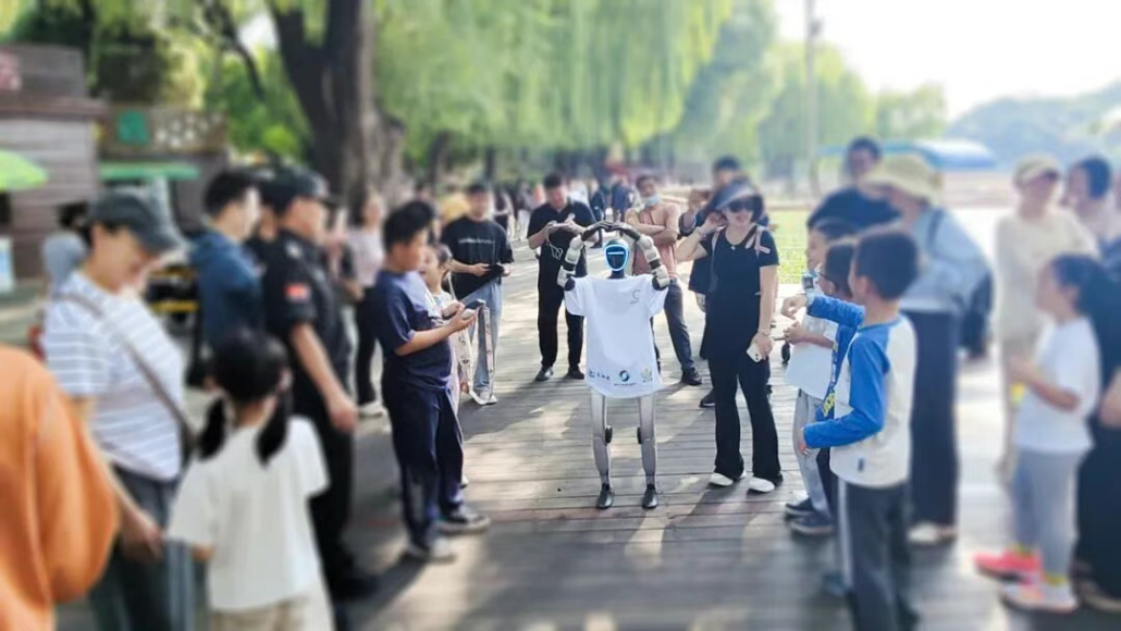 智能機器人“五仁”穿梭在園區(qū)各處,與遊客零距離互動,讓現(xiàn)場歡樂氛圍持續(xù)升級。
